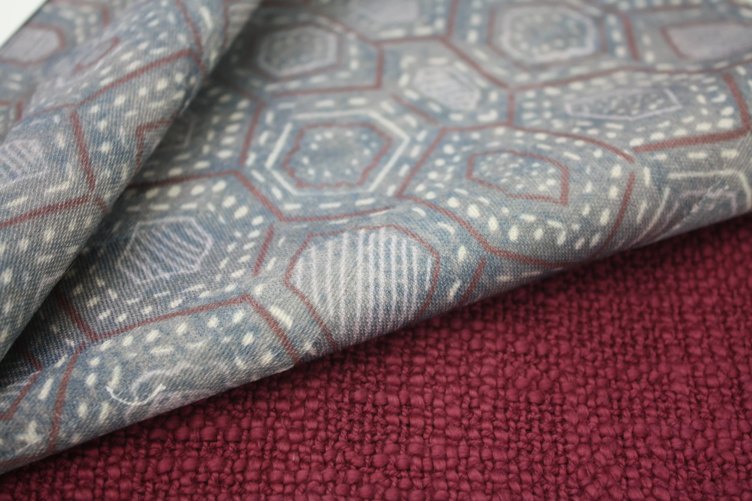Blending geometric patterns with organic lines in neutral tones, this collection incorporates woven and printed textiles rich in texture and varied in pattern. This project was a collaboration between SCAD, Traditional Home Magazine and Fabricut.